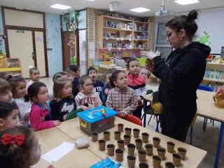 TAMÉN FALAMOS DA IMPORTANCIA DO COMPOST PARA QUE AS PLANTAS MEDREN MOI FORTES; POR ISO, CADA UNHA E CADA UN DE NÓS, PLANTAMOS UNHA SEMENTE NUN TESTO CHEO DE TERRA ONDE TAMÉN SE BOTOU UN POUCO DE COMPOST.